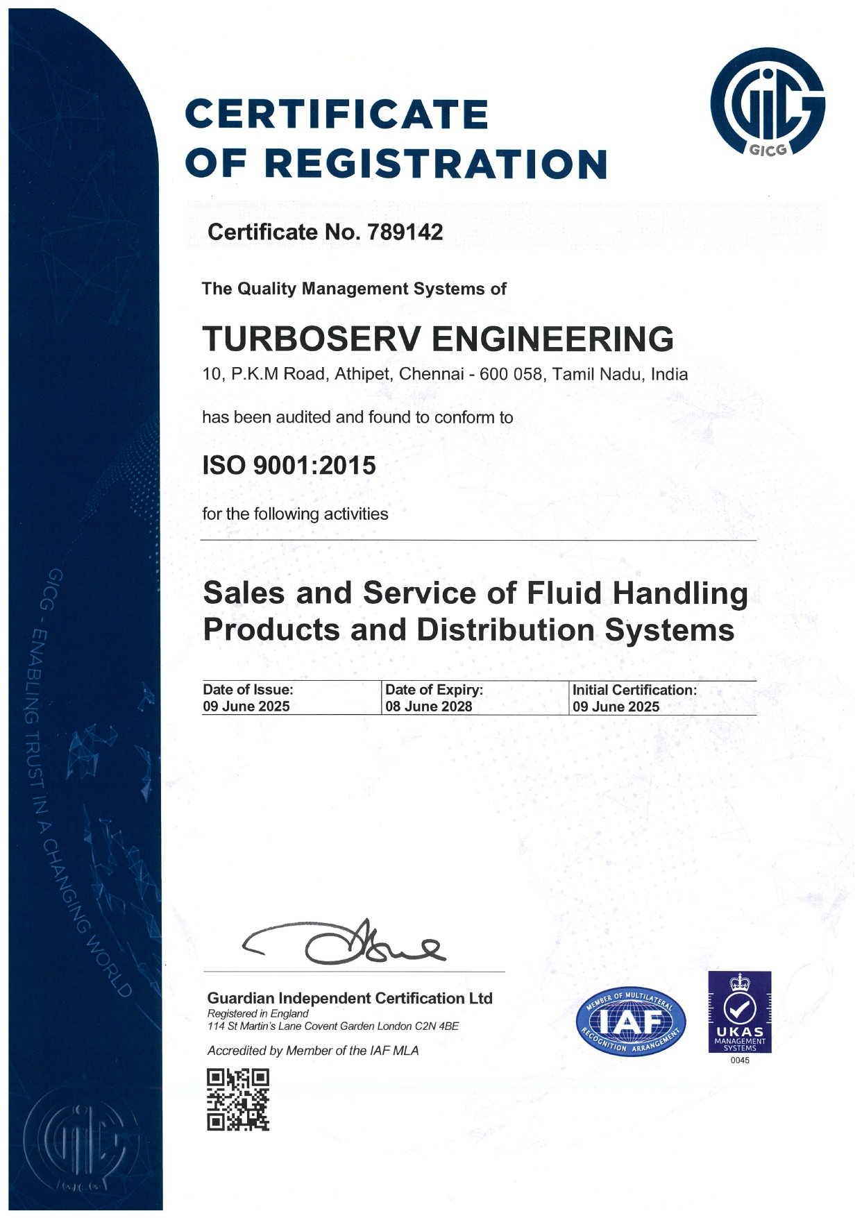 Turboserv Engineering operates under ISO-certified systems, ensuring safety, quality, and global compliance in every project.